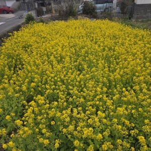 阪急箕面駅近くのメイン道路から少し外れた一角に、鮮やかな黄色の菜の花が一面に咲いていました。