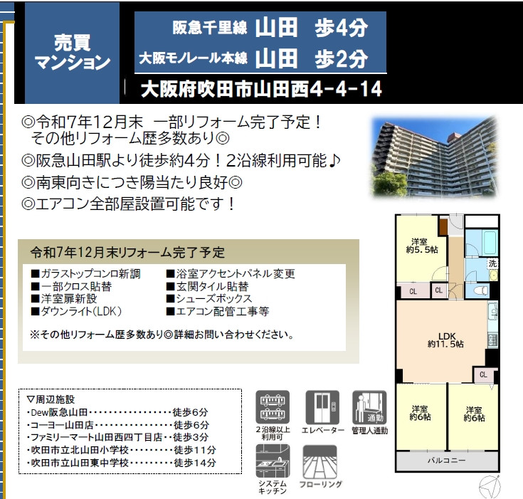 阪急千里線 山田駅より 徒歩4分
